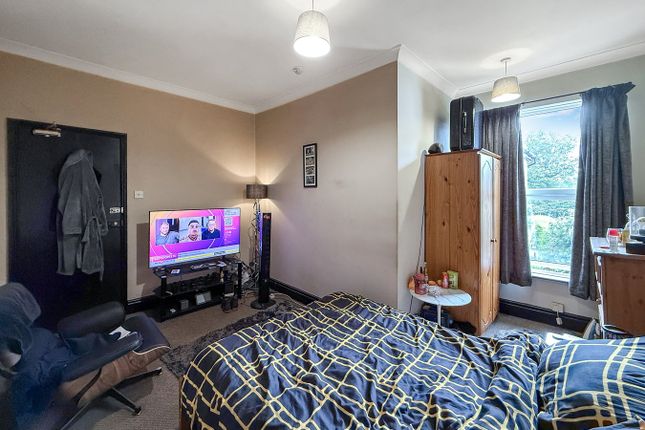 Fantastic investment opportunity to purchase this seven/eight bedroom detached house, currently operating as an HMO, generating an income of £41,880 per annum when fully occupied. The property features two bedrooms, a communal sitting room/bedroom eight, kitchen, bathroom, and cloakroom on the ground floor. The first floor includes four bedrooms, an additional kitchen, a family bathroom, and a separate shower room. The second floor has one bedroom. Six bedrooms are equipped with hand wash basins. The property has a small front garden and a rear garden mainly laid to lawn with a storage shed. It is located near multiple supermarkets, gyms, parks, and schools, with a bus service available to the town center.